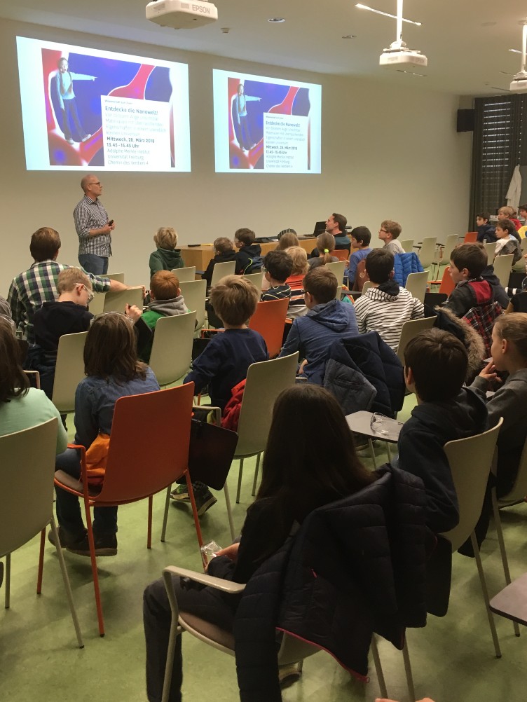 Wir haben die Nanowelt mit Wissenschaftler/innen des Adolphe Merkle Instituts entdeckt. Sie zeigten uns ihre “Tricks” beim „Goûters Scientifiques“!