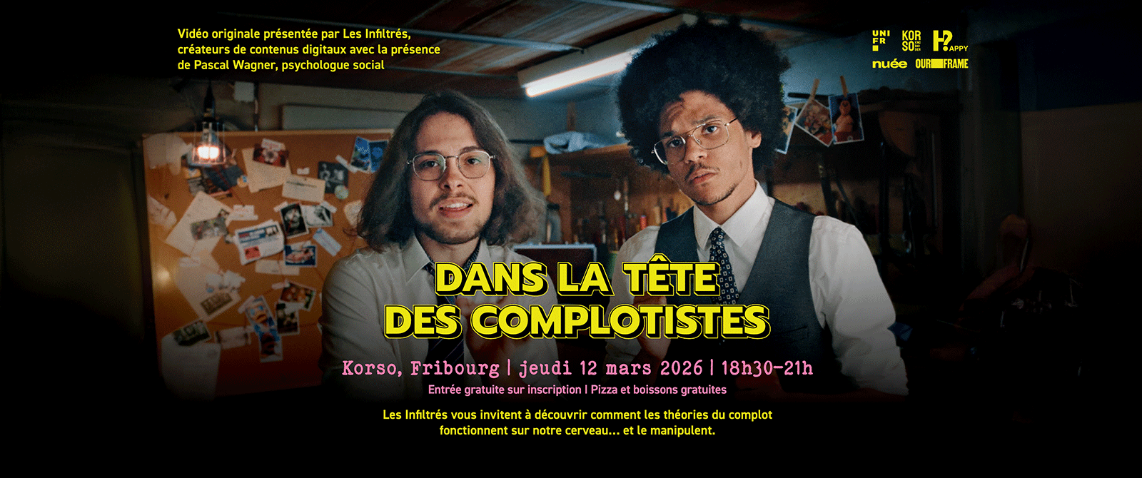 «Dans la tête des complotistes» Projection & conférence FR 12.03.2026 18h30 - 21h00 Korso Kino Bar Sur inscription
