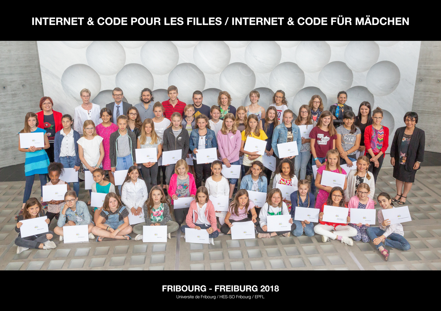 La cérémonie de remise des attestation a eu lieu le 23 juin 2018 à l'Université de Fribourg. La Prof. Delphine Bechevet, Dép. d’ingénierie des technologies de l'information, Haute école du paysage, de l’ingénierie et de l’architecture, Genève (HES-SO) était la marraine de cette cérémonie. Elle nous a présenté son parcours professionnel.